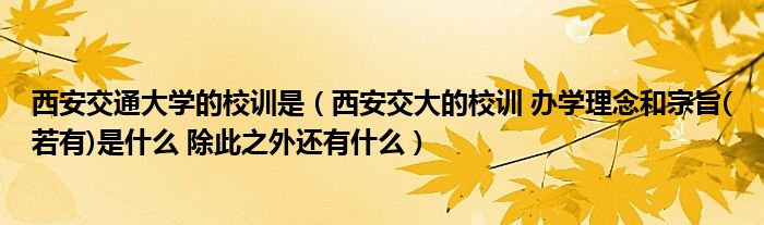 西安交通大学的校训是(西安交大的校训办学理念和宗旨(若有)是什么除此之外还有什么...