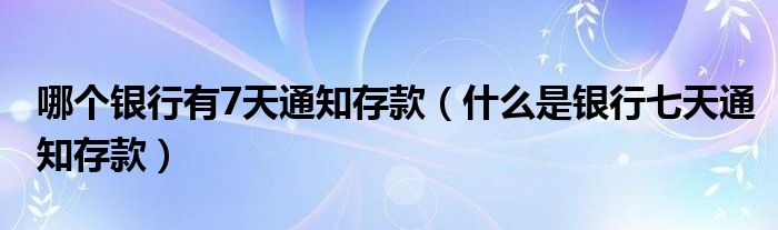 哪个银行有7天通知存款(什么是银行七天通知存款)