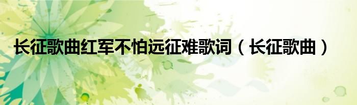 关于长征歌曲红军不怕远征难歌词,长征歌曲这个很多人还不知道,今天菲菲来为大家解答以上的问题,现在让我们一起来看看吧!
