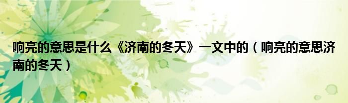 关于响亮的意思是什么《济南的冬天》一文中的,响亮的意思济南的冬天这个很多人还不知道,今天菲菲来为大家解答以上的问题,现在让我们一起来看看吧!
