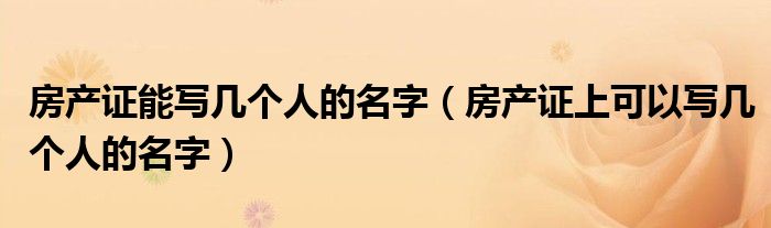 关于房产证能写几个人的名字,房产证上可以写几个人的名字这个很多人还不知道,今天菲菲来为大家解答以上的问题,现在让我们一起来看看吧!