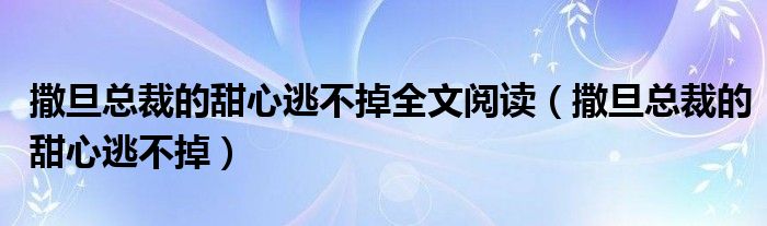 关于撒旦总裁的甜心逃不掉全文阅读,撒旦总裁的甜心逃不掉这个很多人还不知道,今天菲菲来为大家解答以上的问题,现在让我们一起来看看吧!