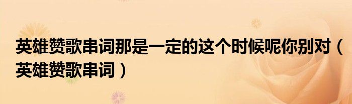 关于英雄赞歌串词那是一定的这个时候呢你别对,英雄赞歌串词这个很多人还不知道,今天菲菲来为大家解答以上的问题,现在让我们一起来看看吧!