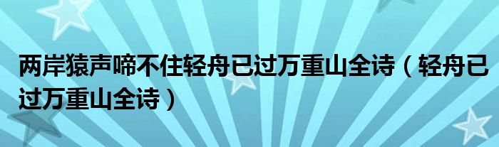 关于两岸猿声啼不住轻舟已过万重山全诗,轻舟已过万重山全诗这个很多人还不知道,今天菲菲来为大家解答以上的问题,现在让我们一起来看看吧!