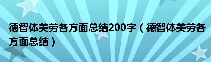 关于德智体美劳各方面总结200字,德智体美劳各方面总结这个很多人还不知道,今天菲菲来为大家解答以上的问题,现在让我们一起来看看吧!