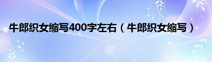关于牛郎织女缩写400字左右,牛郎织女缩写这个很多人还不知道,今天菲菲来为大家解答以上的问题,现在让我们一起来看看吧!