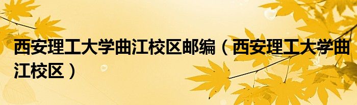 关于西安理工大学曲江校区邮编,西安理工大学曲江校区这个很多人还不知道,今天菲菲来为大家解答以上的问题,现在让我们一起来看看吧!