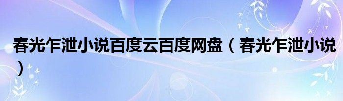 春光乍泄小说百度云百度网盘(春光乍泄小说)