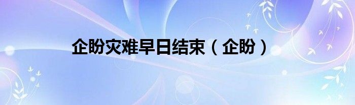 关于企盼灾难早日结束,企盼这个很多人还不知道,今天菲菲来为大家解答以上的问题,现在让我们一起来看看吧!