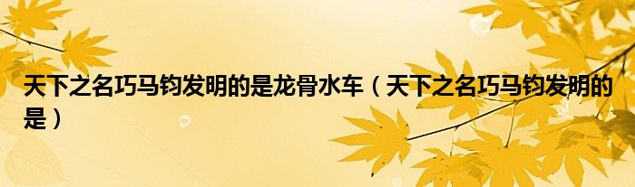 大家好,小晋来为大家解答以下问题,关于天下之名巧马钧发明的是龙骨水车,天下之名巧马钧发明的是很多人还不知道,今天让我们一起来看看吧!