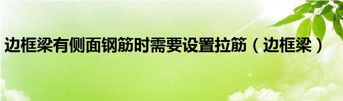 关于边框梁有侧面钢筋时需要设置拉筋,边框梁这个很多人还不知道,今天菲菲来为大家解答以上的问题,现在让我们一起来看看吧!