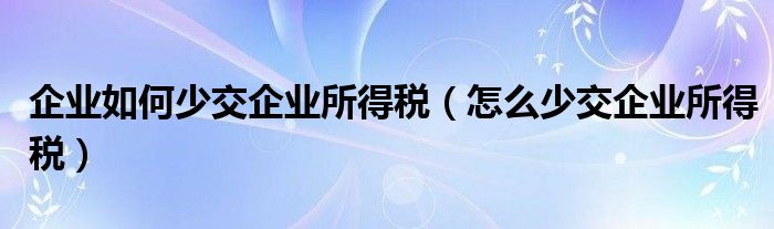 关于企业如何少交企业所得税,怎么少交企业所得税这个很多人还不知道,今天菲菲来为大家解答以上的问题,现在让我们一起来看看吧!