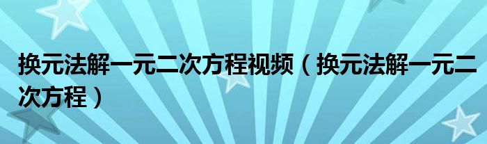 换元法解一元二次方程视频(换元法解一元二次方程)