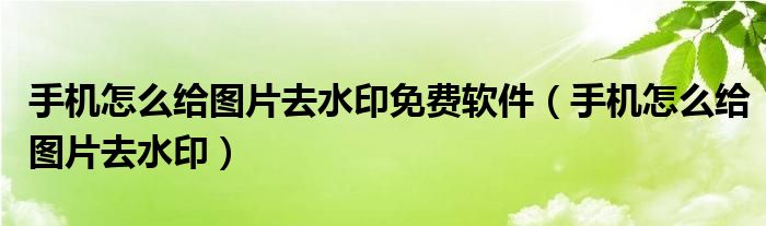 大家好,小晋来为大家解答以下问题,关于手机怎么给图片去水印免费软件,手机怎么给图片去水印很多人还不知道,今天让我们一起来看看吧!