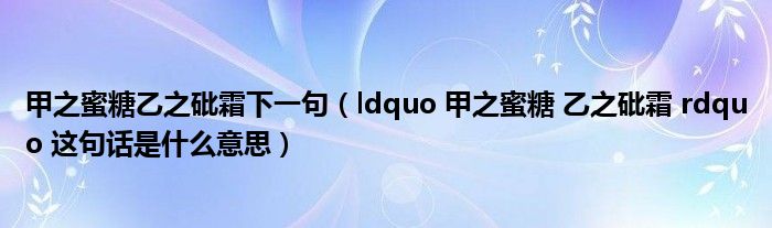 关于甲之蜜糖乙之砒霜下一句,ldquo 甲之蜜糖 乙之砒霜 rdquo 这句话是什么意思这个很多人还不知道,今天菲菲来为大家解答以上的问题,现在让我们一起来看看吧!