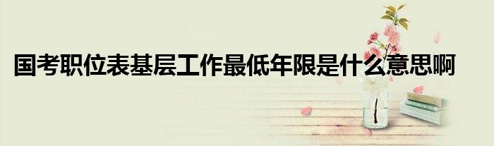 关于国考职位表基层工作最低年限是什么意思啊这个很多人还不知道,今天菲菲来为大家解答以上的问题,现在让我们一起来看看吧!