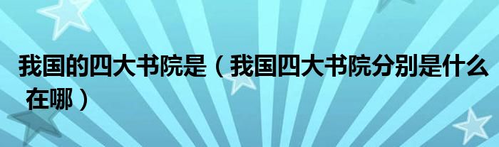 关于我国的四大书院是,我国四大书院分别是什么 在哪这个很多人还不知道,今天菲菲来为大家解答以上的问题,现在让我们一起来看看吧!