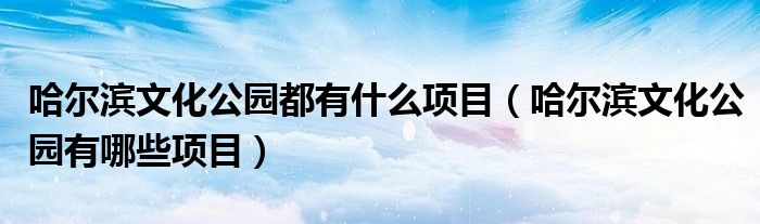 关于哈尔滨文化公园都有什么项目,哈尔滨文化公园有哪些项目这个很多人还不知道,今天菲菲来为大家解答以上的问题,现在让我们一起来看看吧!