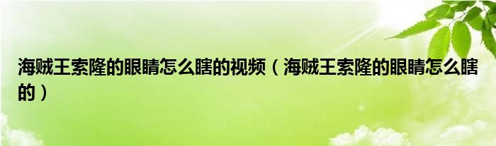 海贼王索隆的眼睛怎么瞎的视频(海贼王索隆的眼睛怎么瞎的)