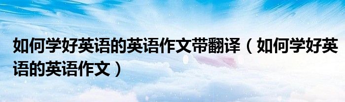 关于如何学好英语的英语作文带翻译,如何学好英语的英语作文这个很多人还不知道,今天菲菲来为大家解答以上的问题,现在让我们一起来看看吧!