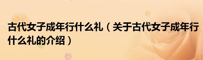 大家好,今天小乐来为大家解答以上的问题。古代女子成年行什么礼,关于古代女子成年行什么礼的介绍很多人还不知道,现在让我们一起来看看吧!