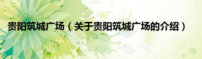 大家好,今天小乐来为大家解答以上的问题。贵阳筑城广场,关于贵阳筑城广场的介绍很多人还不知道,现在让我们一起来看看吧!
