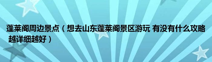 关于蓬莱阁周边景点,想去山东蓬莱阁景区游玩 有没有什么攻略 越详细越好这个很多人还不知道,今天菲菲来为大家解答以上的问题,现在让我们一起来看看吧!