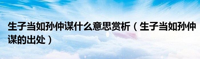 关于生子当如孙仲谋什么意思赏析,生子当如孙仲谋的出处这个很多人还不知道,今天菲菲来为大家解答以上的问题,现在让我们一起来看看吧!