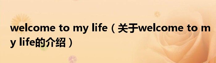 大家好,今天小乐来为大家解答以上的问题。welcome to my life,关于welcome to my life的介绍很多人还不知道,现在让我们一起来看看吧!