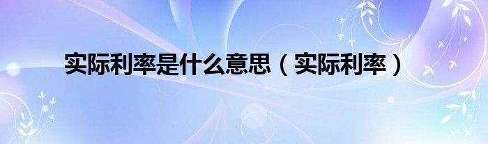 实际利率是什么意思(实际利率)