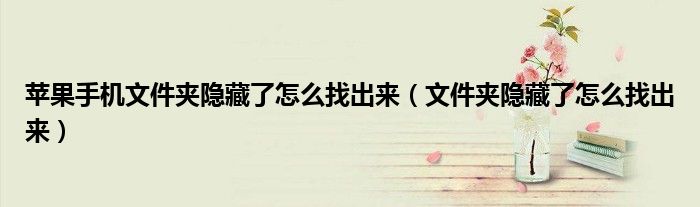 关于苹果手机文件夹隐藏了怎么找出来,文件夹隐藏了怎么找出来这个很多人还不知道,今天菲菲来为大家解答以上的问题,现在让我们一起来看看吧!