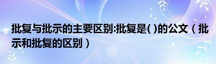关于批复与批示的主要区别:批复是( )的公文,批示和批复的区别这个很多人还不知道,今天菲菲来为大家解答以上的问题,现在让我们一起来看看吧!
