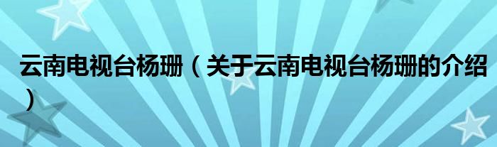 云南电视台杨珊(关于云南电视台杨珊的介绍)