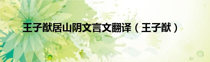 关于王子猷居山阴文言文翻译,王子猷这个很多人还不知道,今天菲菲来为大家解答以上的问题,现在让我们一起来看看吧!