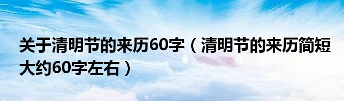 关于关于清明节的来历60字,清明节的来历简短大约60字左右这个很多人还不知道,今天菲菲来为大家解答以上的问题,现在让我们一起来看看吧!