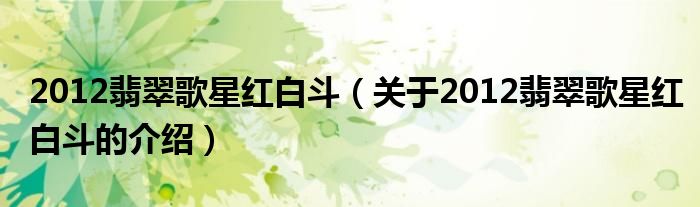 2012翡翠歌星红白斗(关于2012翡翠歌星红白斗的介绍)