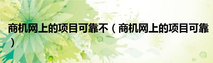 关于商机网上的项目可靠不,商机网上的项目可靠这个很多人还不知道,今天菲菲来为大家解答以上的问题,现在让我们一起来看看吧!