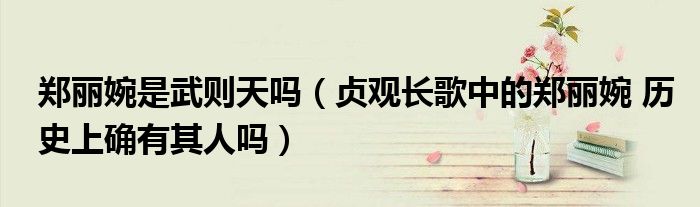 关于郑丽婉是武则天吗,贞观长歌中的郑丽婉 历史上确有其人吗这个很多人还不知道,今天菲菲来为大家解答以上的问题,现在让我们一起来看看吧!