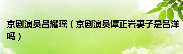 关于京剧演员吕耀瑶,京剧演员谭正岩妻子是吕洋吗这个很多人还不知道,今天菲菲来为大家解答以上的问题,现在让我们一起来看看吧!