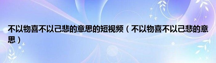 不以物喜不以己悲的意思的短视频(不以物喜不以己悲的意思)