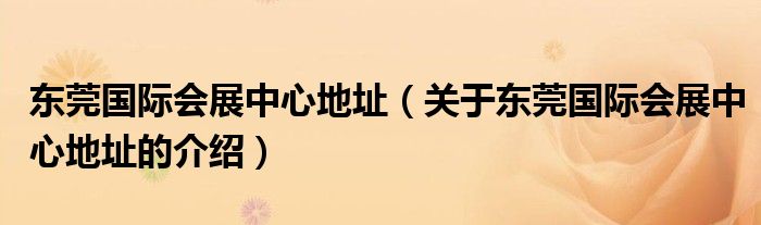 大家好,今天小乐来为大家解答以上的问题。东莞国际会展中心地址,关于东莞国际会展中心地址的介绍很多人还不知道,现在让我们一起来看看吧!
