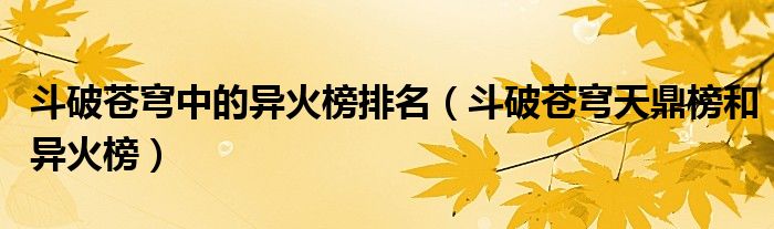 斗破苍穹中的异火榜排名(斗破苍穹天鼎榜和异火榜)