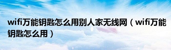 wifi万能钥匙怎么用别人家无线网(wifi万能钥匙怎么用)