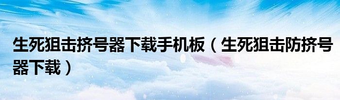 关于生死狙击挤号器下载手机板,生死狙击防挤号器下载这个很多人还不知道,今天菲菲来为大家解答以上的问题,现在让我们一起来看看吧!