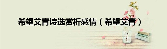 关于希望艾青诗选赏析感情,希望艾青这个很多人还不知道,今天菲菲来为大家解答以上的问题,现在让我们一起来看看吧!