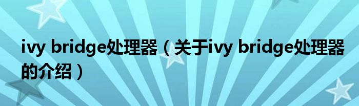 大家好,今天小乐来为大家解答以上的问题。ivy bridge处理器,关于ivy bridge处理器的介绍很多人还不知道,现在让我们一起来看看吧!