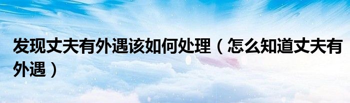 关于发现丈夫有外遇该如何处理,怎么知道丈夫有外遇这个很多人还不知道,今天菲菲来为大家解答以上的问题,现在让我们一起来看看吧!