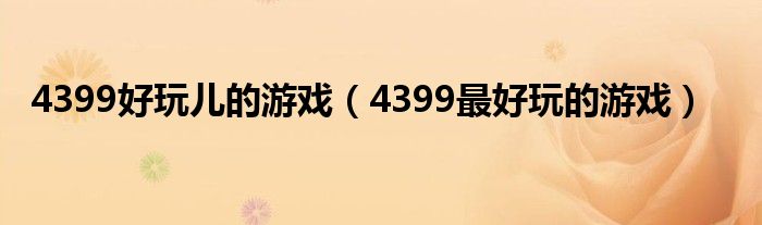 4399好玩儿的游戏(4399最好玩的游戏)