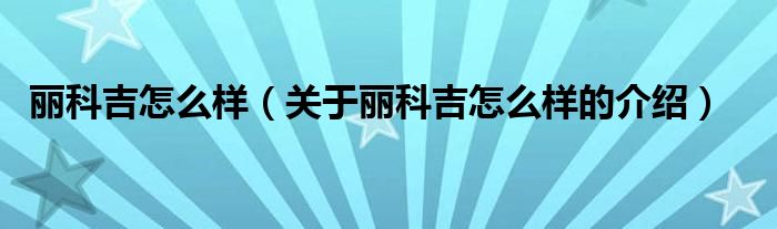 丽科吉怎么样(关于丽科吉怎么样的介绍)