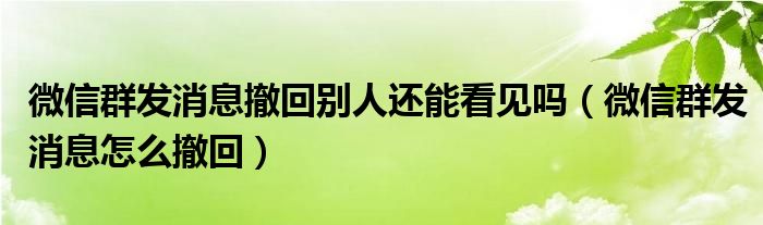 大家好,小晋来为大家解答以下问题,关于微信群发消息撤回别人还能看见吗,微信群发消息怎么撤回很多人还不知道,今天让我们一起来看看吧!